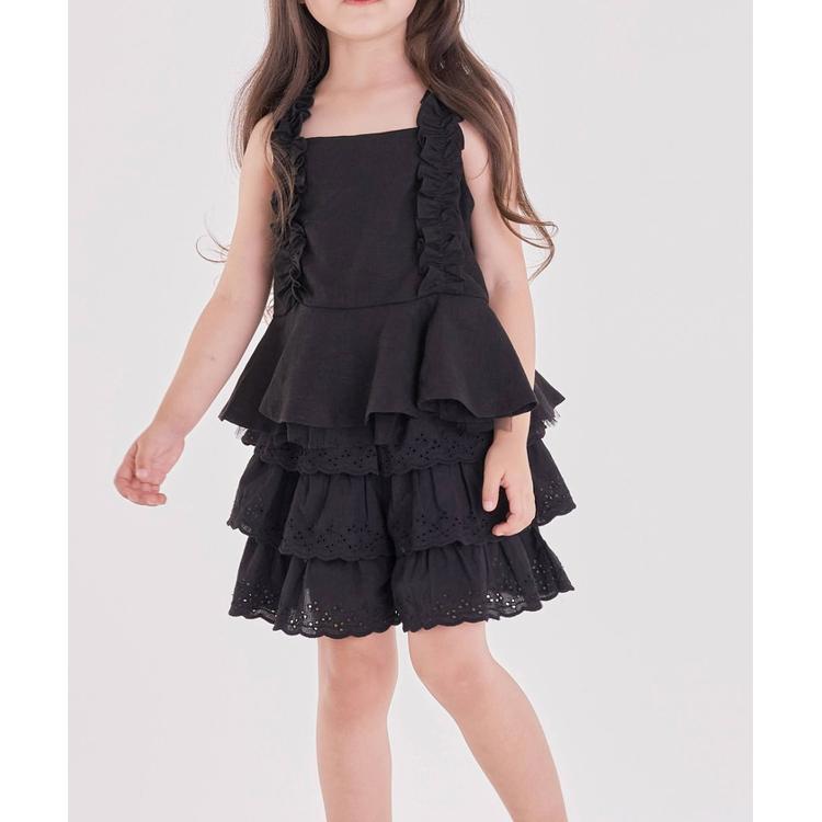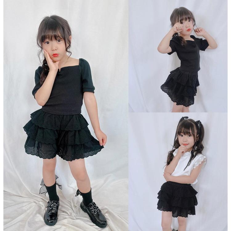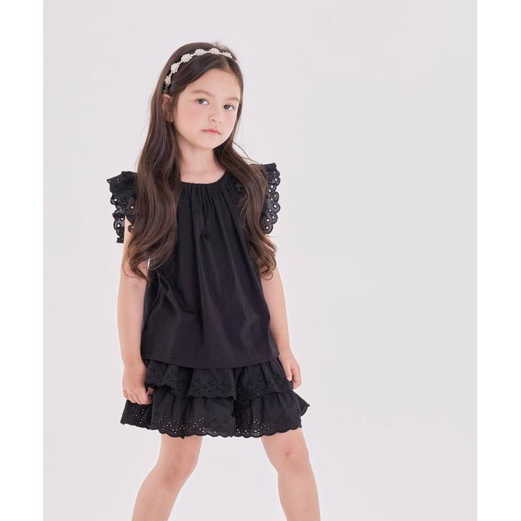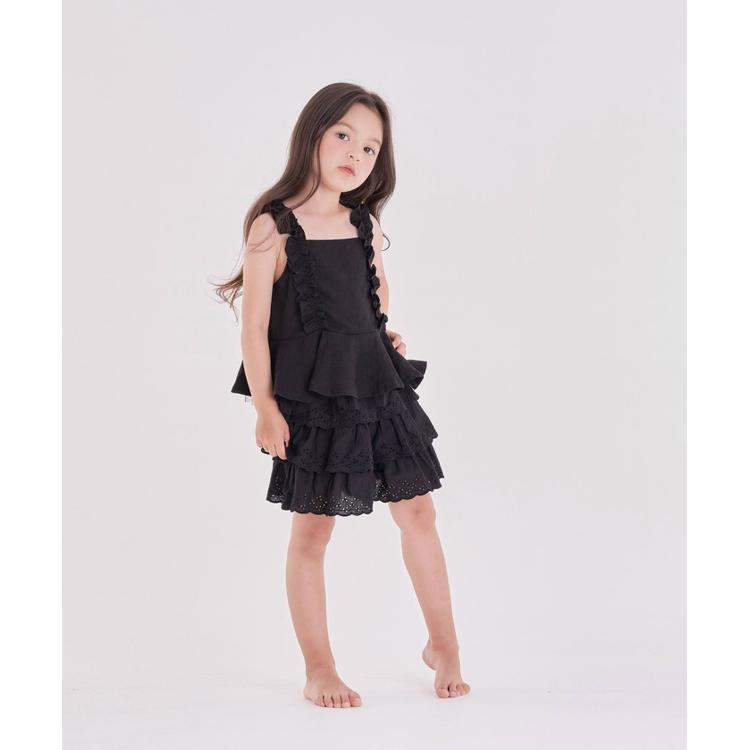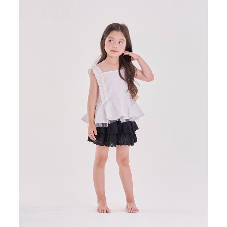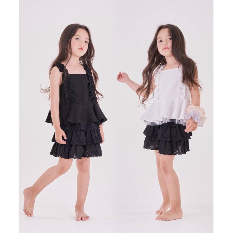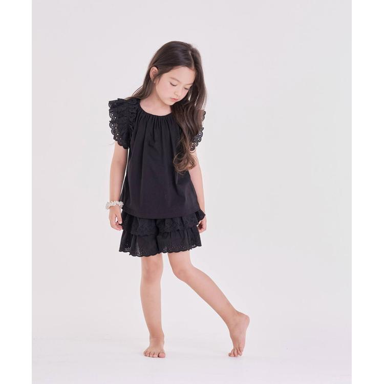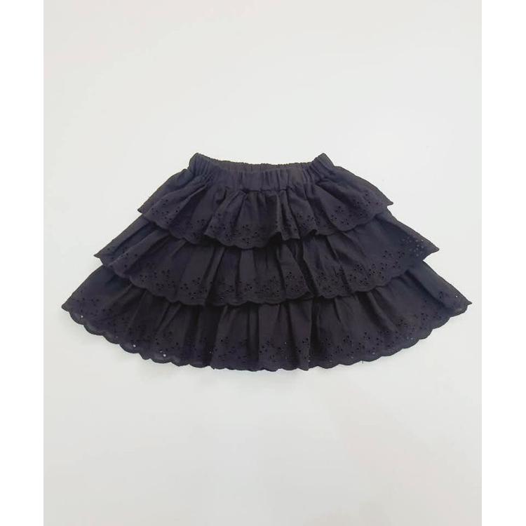 ・大人っぽい黒のコットンレースで仕立てたキュロットパンツは、単調になりがちな黒スカートパンツに心地良いリズムを加えたティアードカンカンデザインがとっても涼しげな感じ♪