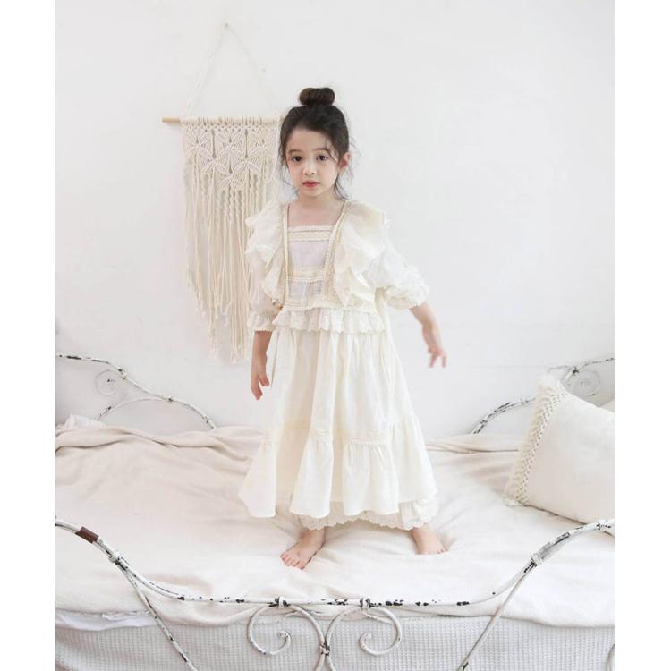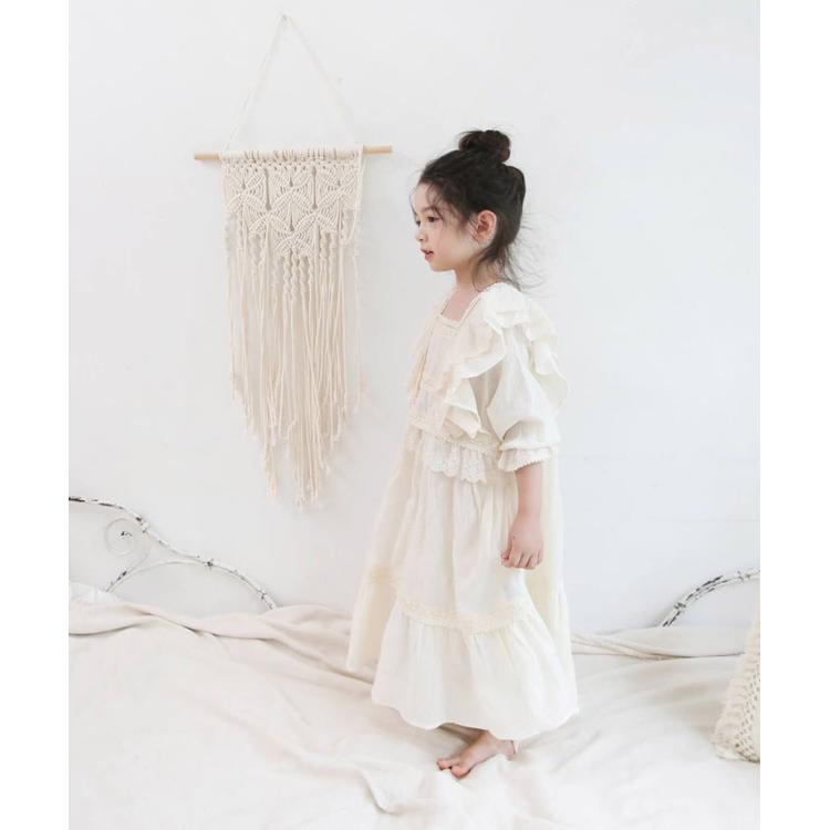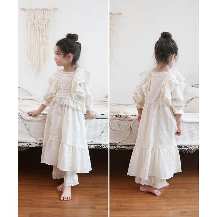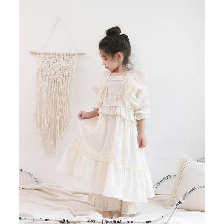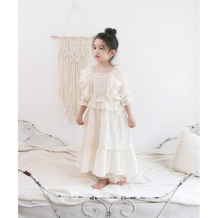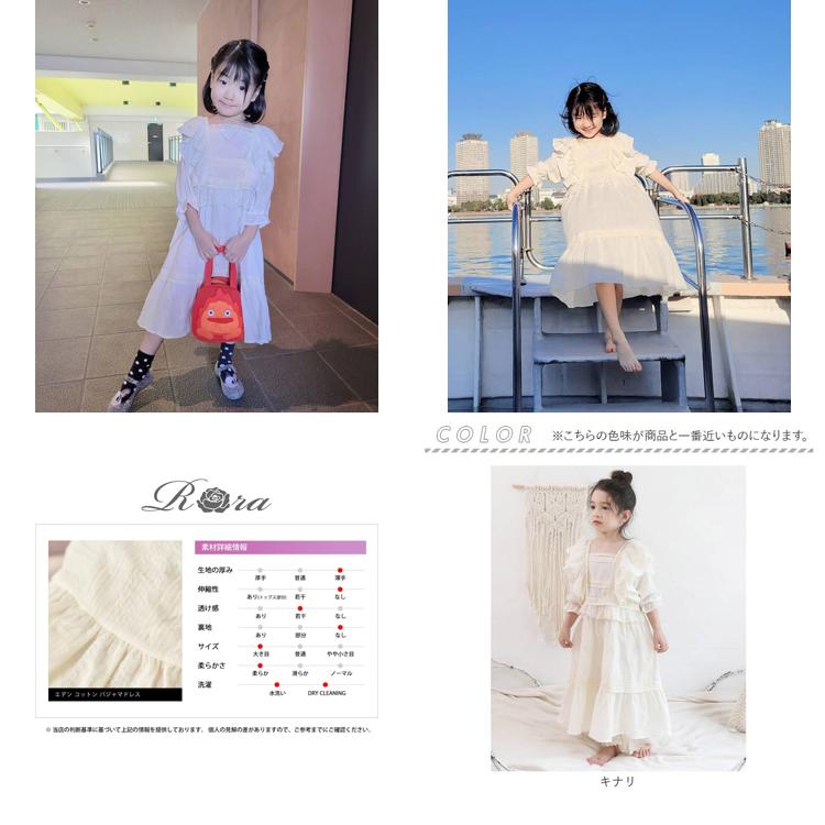 ・ナチュラル可愛い生成り色のコットン素材に透明度を高めるデザインがギフトにも喜ばれる子供服Roraエデン綿100パジャマドレスです。