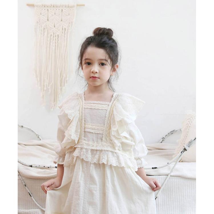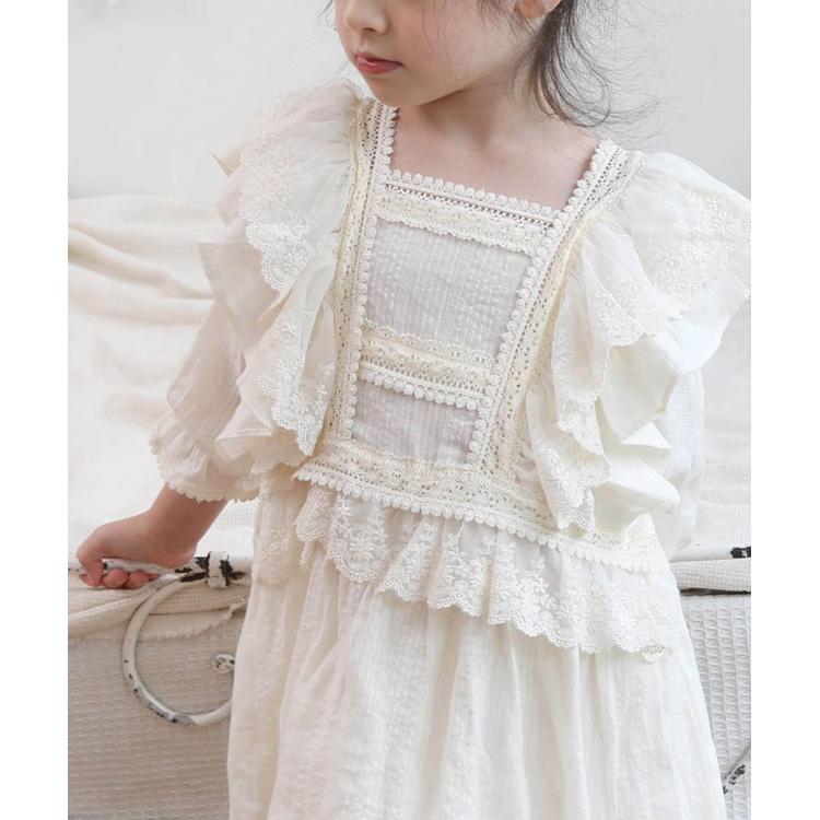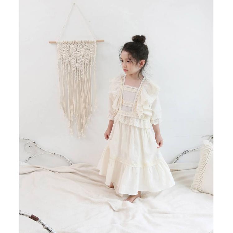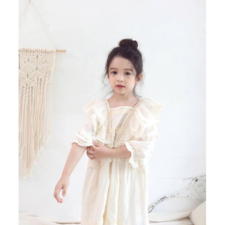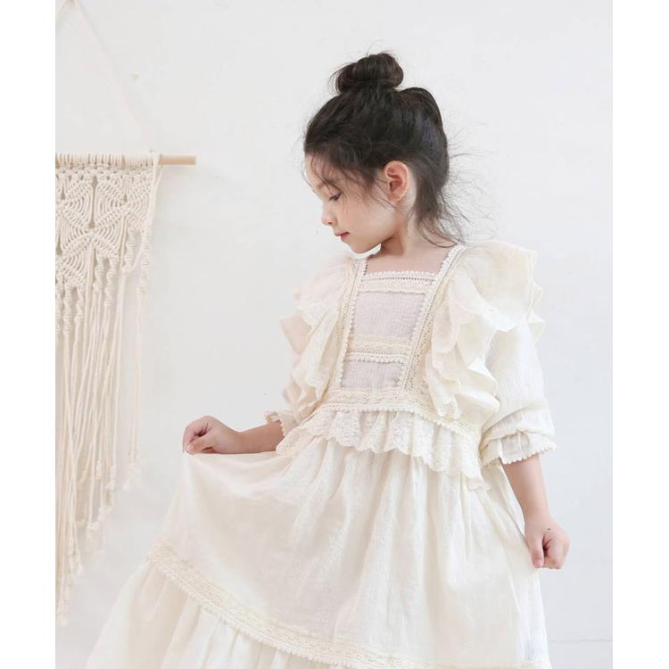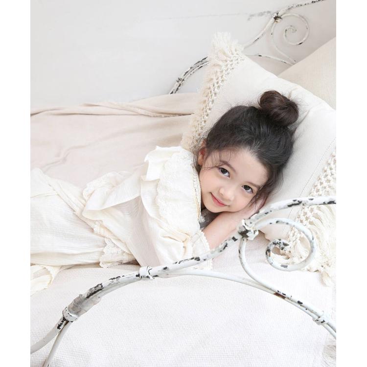 ・ナチュラル可愛い生成り色のコットン素材に透明度を高めるデザインがギフトにも喜ばれる子供服Roraエデン綿100パジャマドレスです。