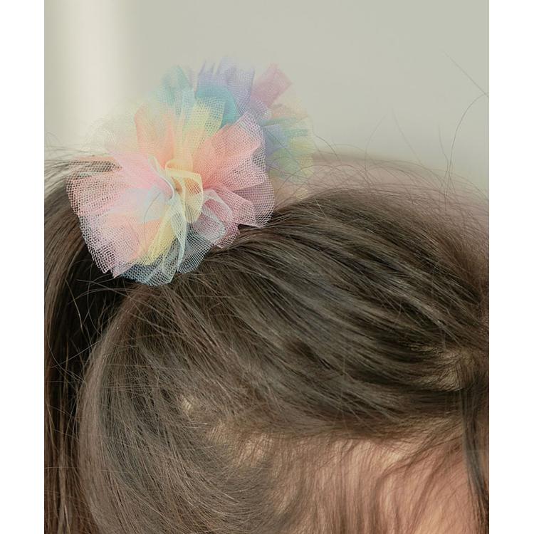 ・カラフルなパステルカラーチュールで仕上げたちょっぴり大き目のワンポイントボンボンは、一つ結びやお団子ヘアにつけるだけで、夏のシンプルなコーデも憧れのガーリーに♪