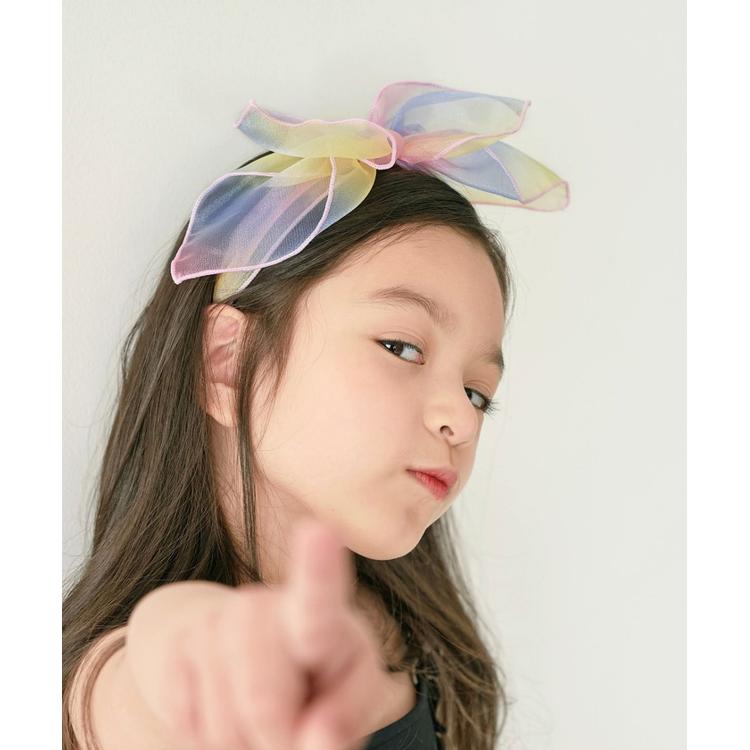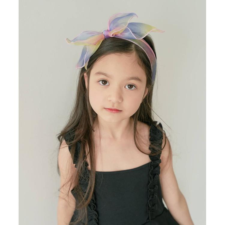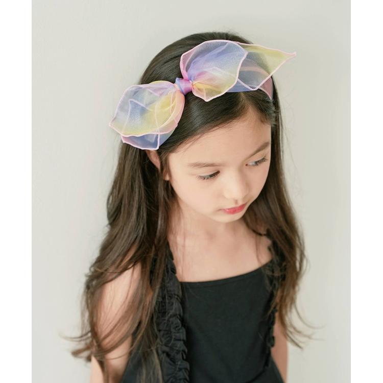 ・シアーレインボーカラーが夏コーデにアクセントとになる子供服Roraスエレインボーリボンカチューシャです。