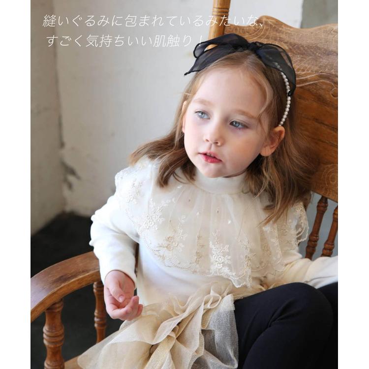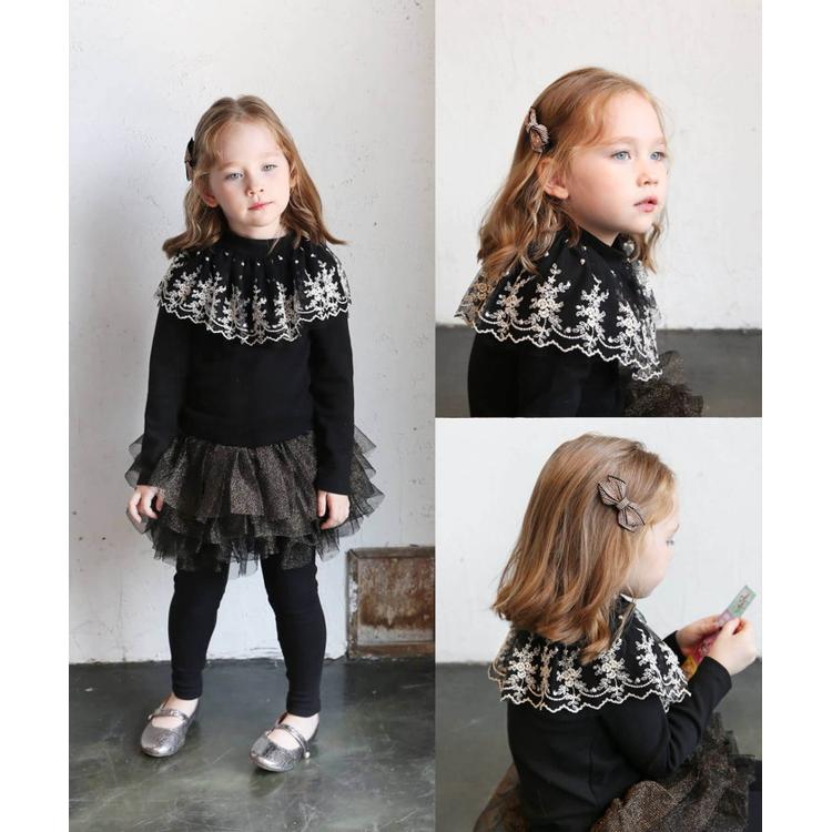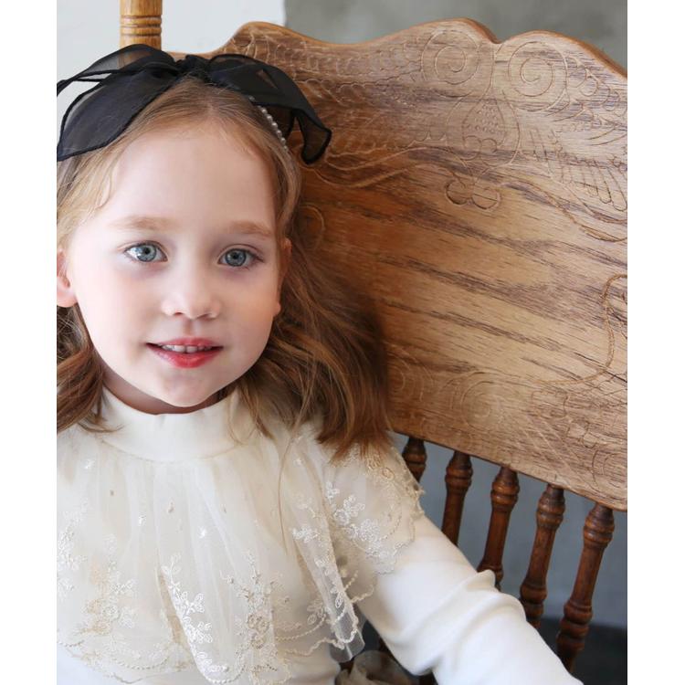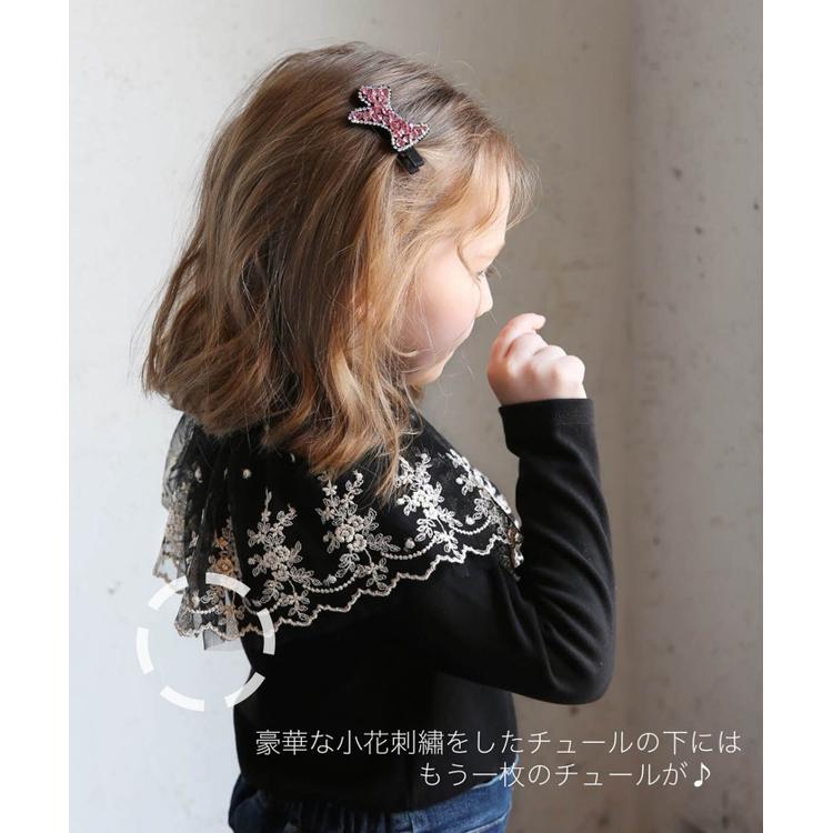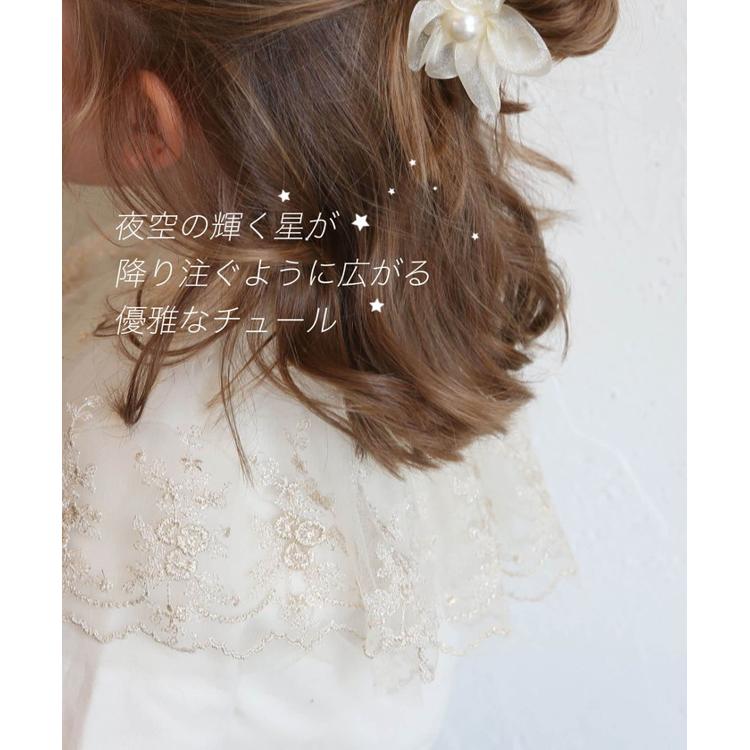 ・寒い風が吹いても、ほっこり暖かさを キープしてくれます!そして、首元から広がる素敵なチュール!シャンパンゴールドの小花がちりばめられたチュールの中にはもう一枚のチュールが重ねられていて、ふんわりとした愛らしいデザインになっているんです
