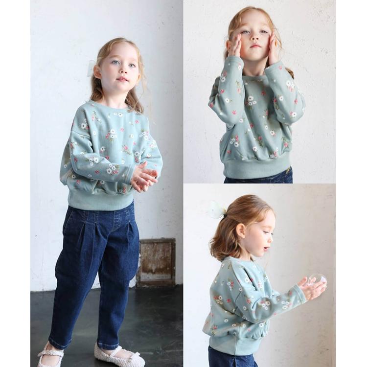 ・優しい色合いに女の子らしい花柄で気分も上がりそう♪ゆったりとした首周り、ドロップショルダー、だぼっとしすぎないリラックスフィットの シルエットが大人っぽく、動きやすさとおしゃれを兼ね備えています。