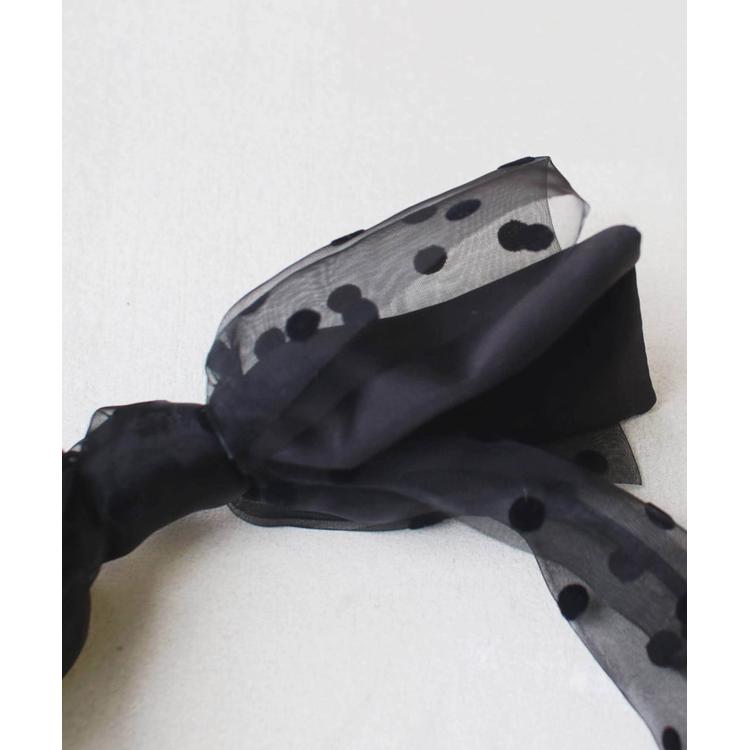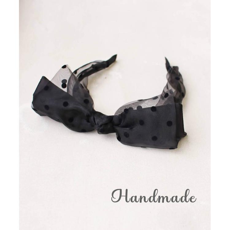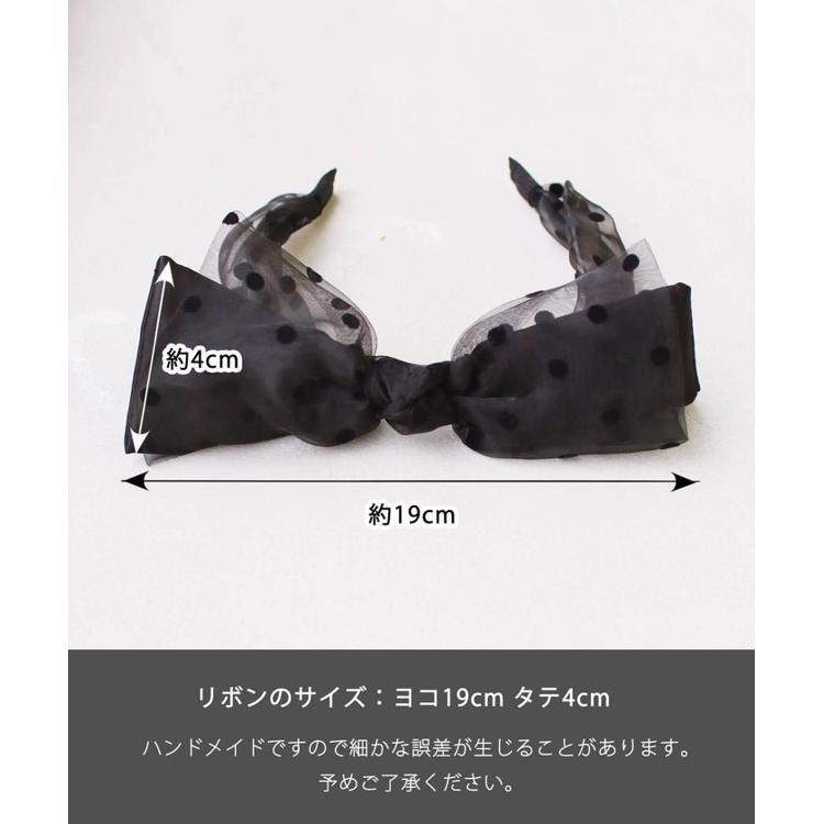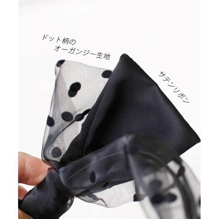 ・しかし、このカチューシャの真の魔法は、そのサテンリボンの上にプラスした、ドット柄のオーガンジー生地で作られたリボンが2重に飾られている点になります。