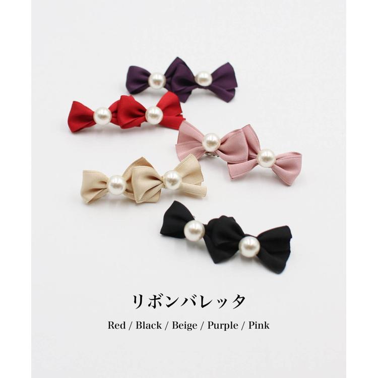 ・赤、黒、ベージュ、ピンク、パープルのカラフルが楽しいリボンバレッタ。