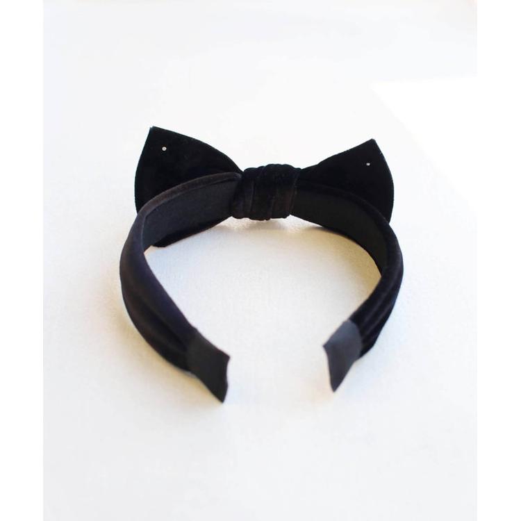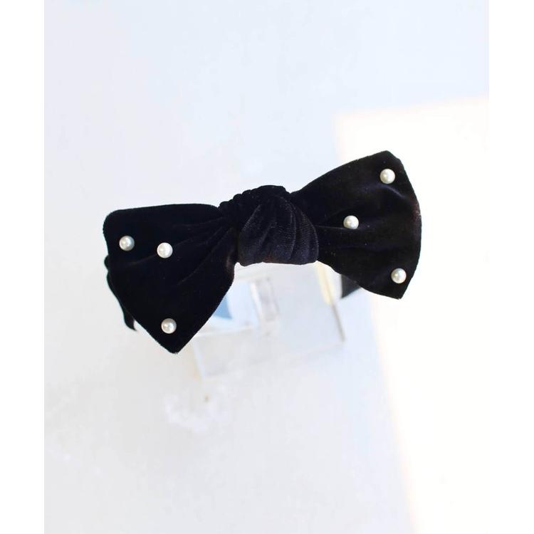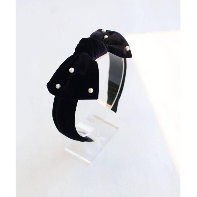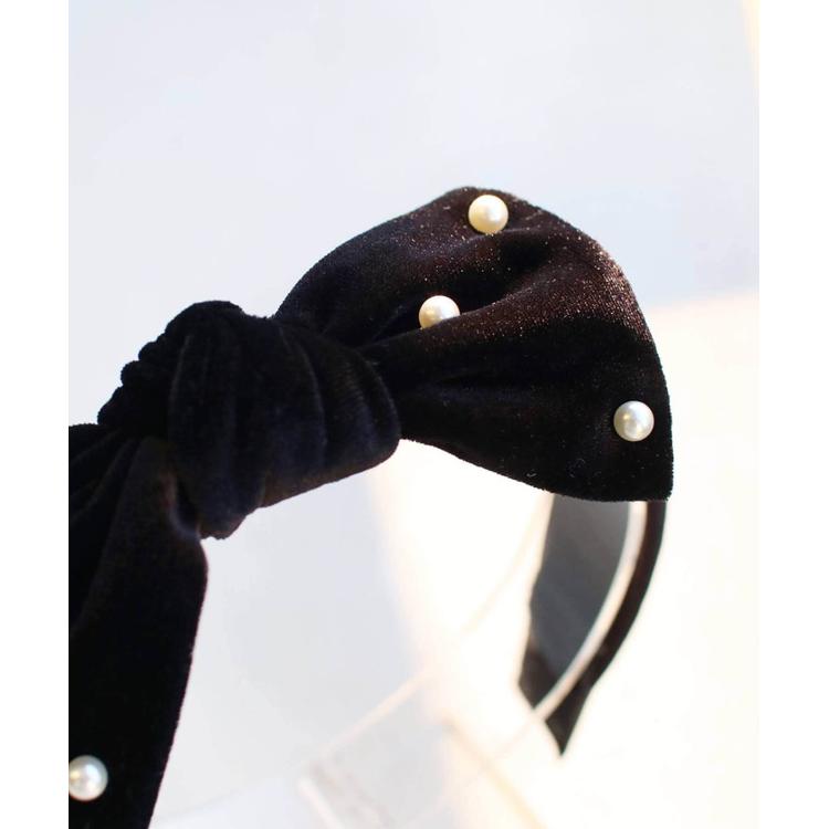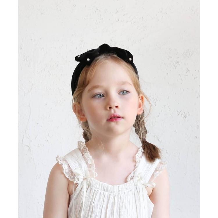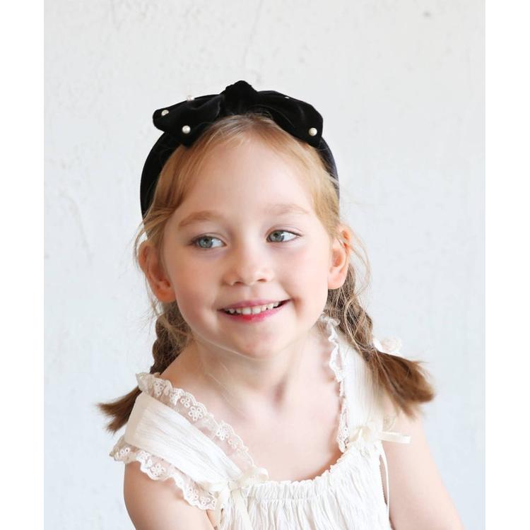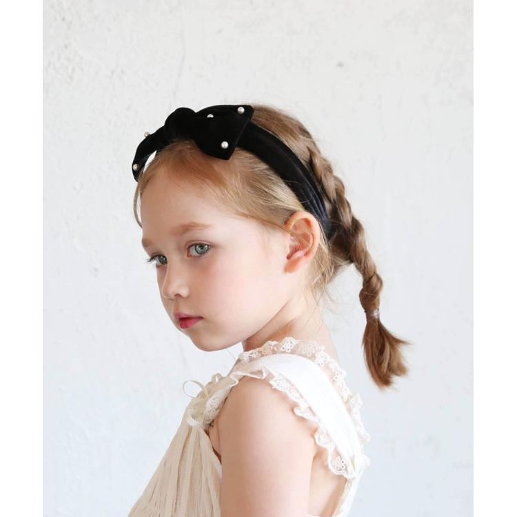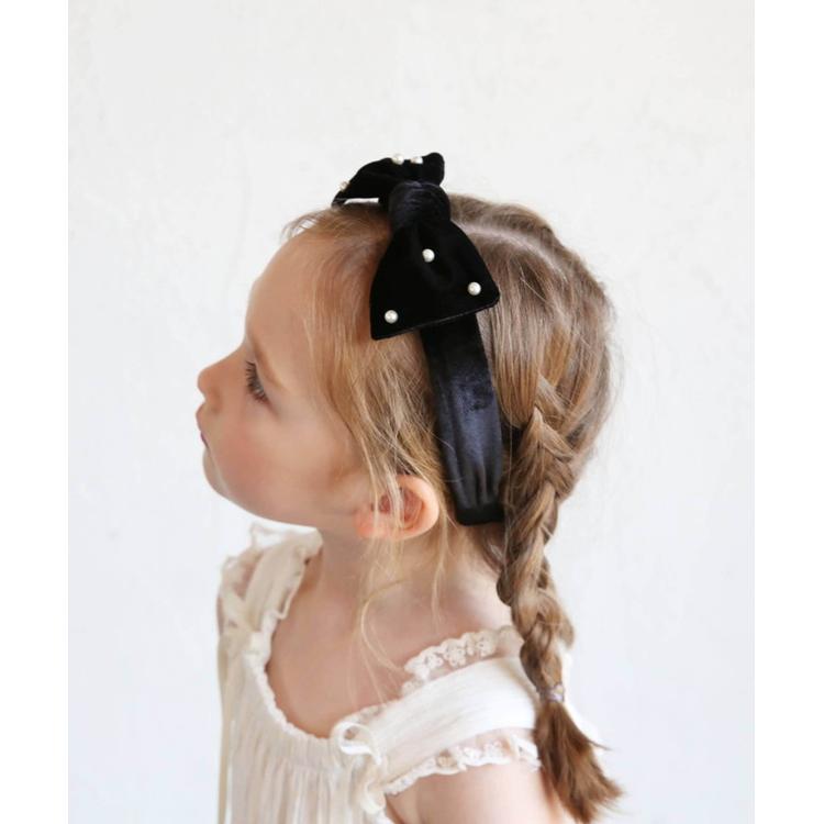 ・ベロア素材で仕上げたリボンカチューシャにパールが雪のように輝き、幅広で大人っぽいデザインが子供の美しい髪を彩ります。