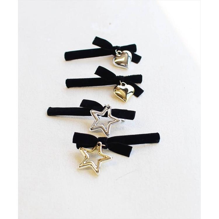 ・ベロアの高級感とシルバー&ゴールドの星とハートのチャームが、普段のコーディネートを一気に華やかに。