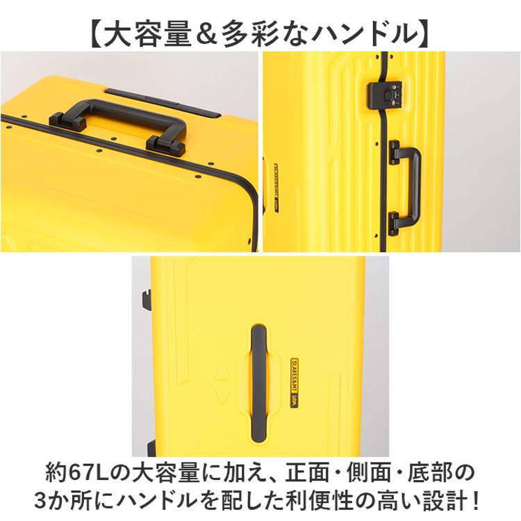 ・約67Lの大容量に加え、正面・側面・底部の3か所にハンドルを配した利便性の高い設計!