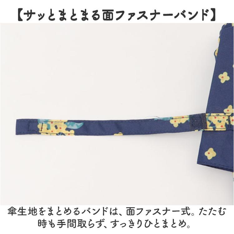 ・傘生地をまとめるバンドは、面ファスナー式。たたむ時も手間取らず、すっきりひとまとめ。