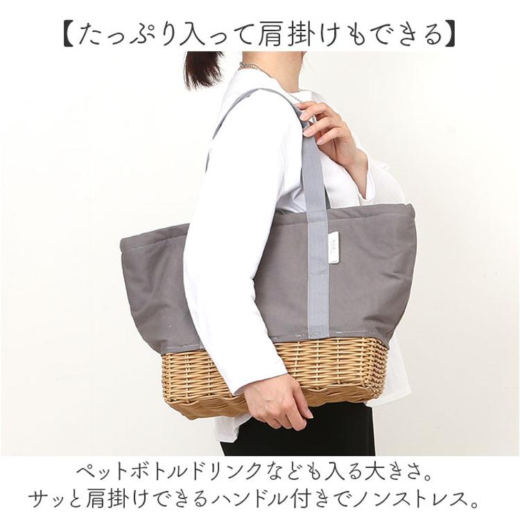 ・ペットボトルドリンクなども入る大きさ。サッと肩掛けできるハンドル付きでノンストレス。