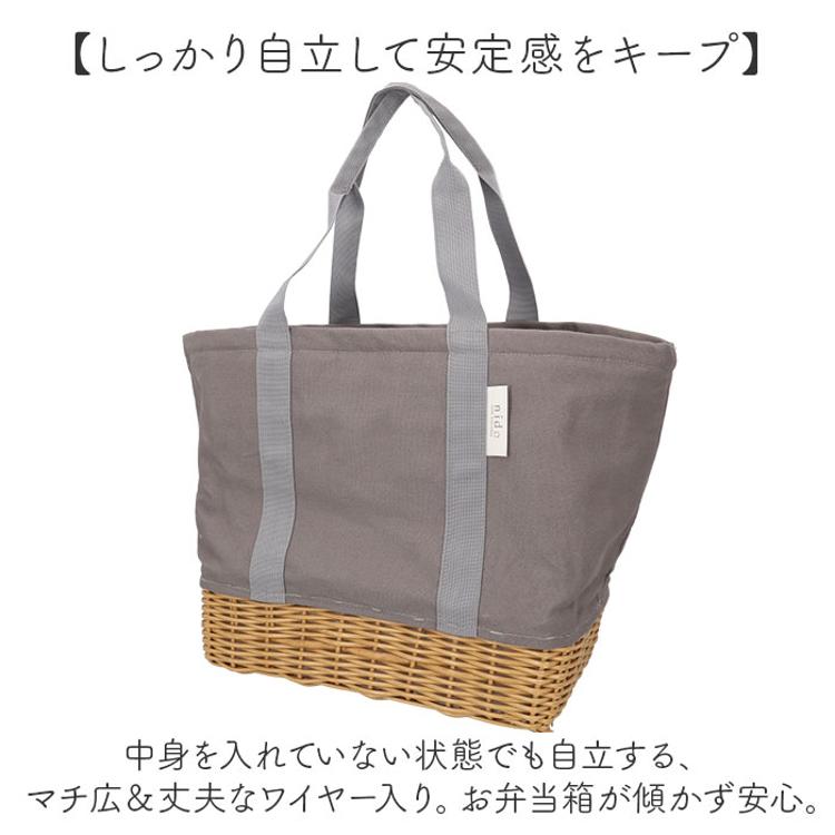 ・中身を入れていない状態でも自立する、マチ広&丈夫なワイヤー入り。お弁当箱が傾かず安心。