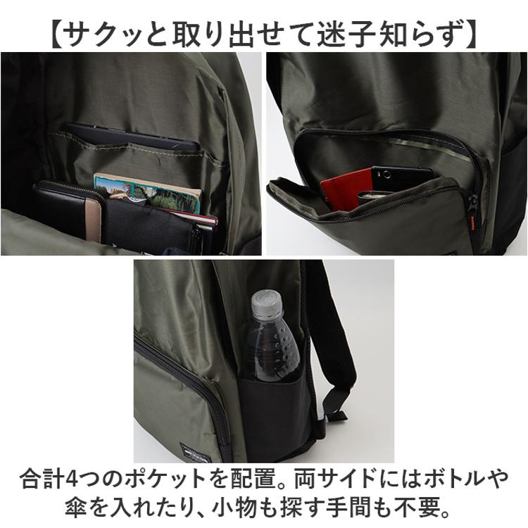 ・合計4つのポケットを配置。両サイドにはボトルや傘を入れたり、小物も探す手間も不要。