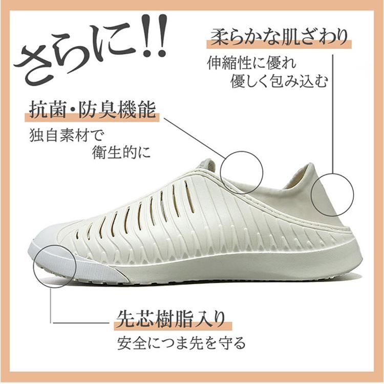 ・超軽量、衝撃吸収、抗菌・防臭、耐摩耗性、防水など多機能が嬉しい素材を本体・ソールに採用