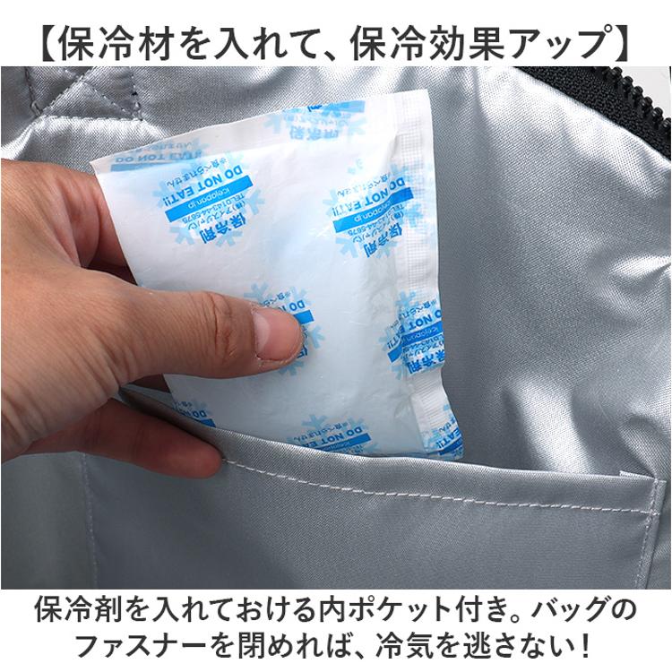 ・保冷剤を入れておける内ポケット付き。バッグのファスナーを閉めれば、冷気を逃さない!