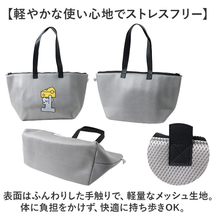 ・表面はふんわりした手触りで、軽量なメッシュ生地。体に負担をかけず、快適に持ち歩きOK。