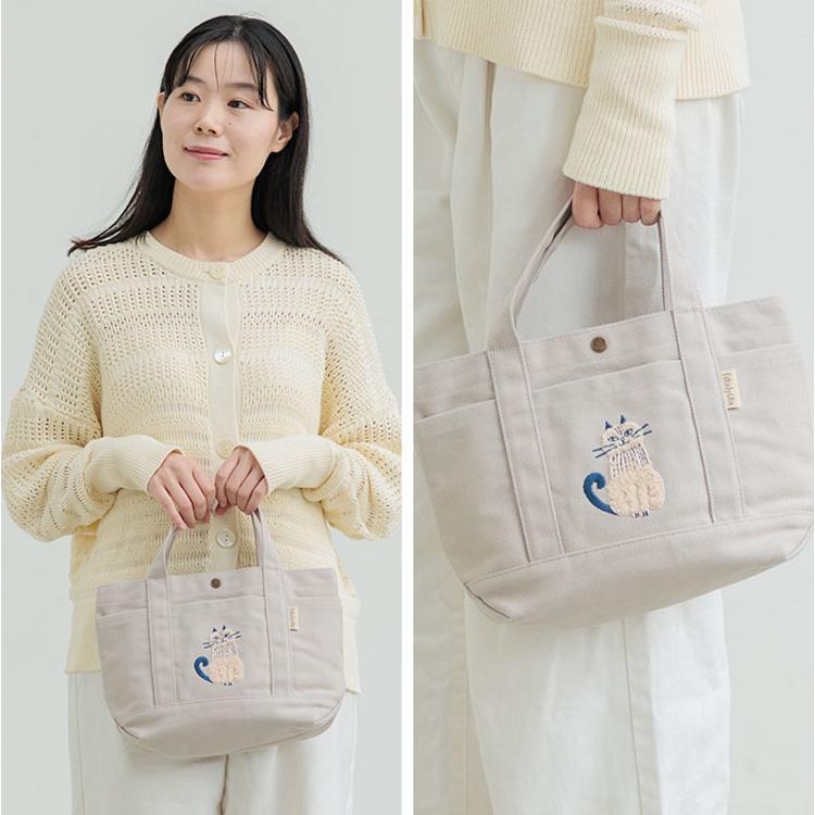 ・もこもこが魅力のサガラ刺?を採用。シンプルだけどこだわりを感じる、大人のためのトート。
