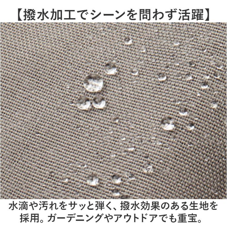 ・水滴や汚れをサッと弾く、撥水効果のある生地を採用。ガーデニングやアウトドアでも重宝。