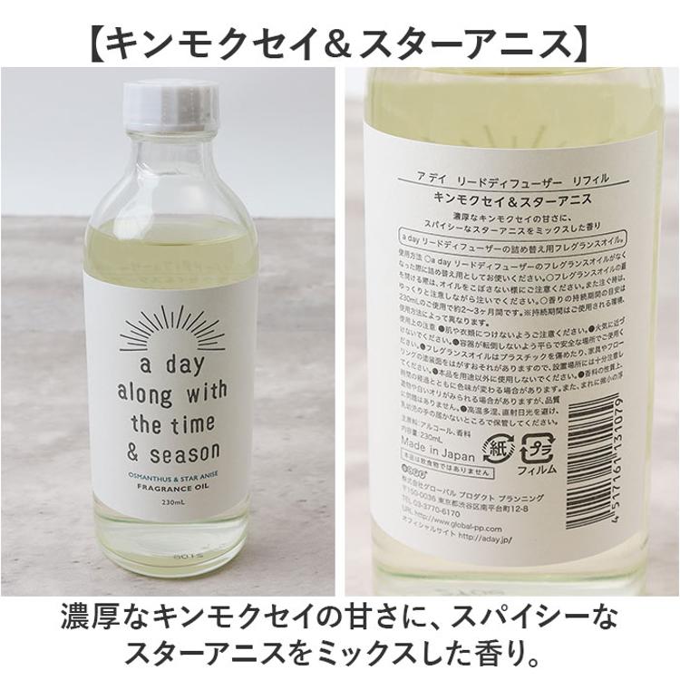 (※)持続期間は、使用環境や使用方法によって異なります。リードディフューザー本体は、別ページにてお買い求めください。商品コード:adaydiffuser