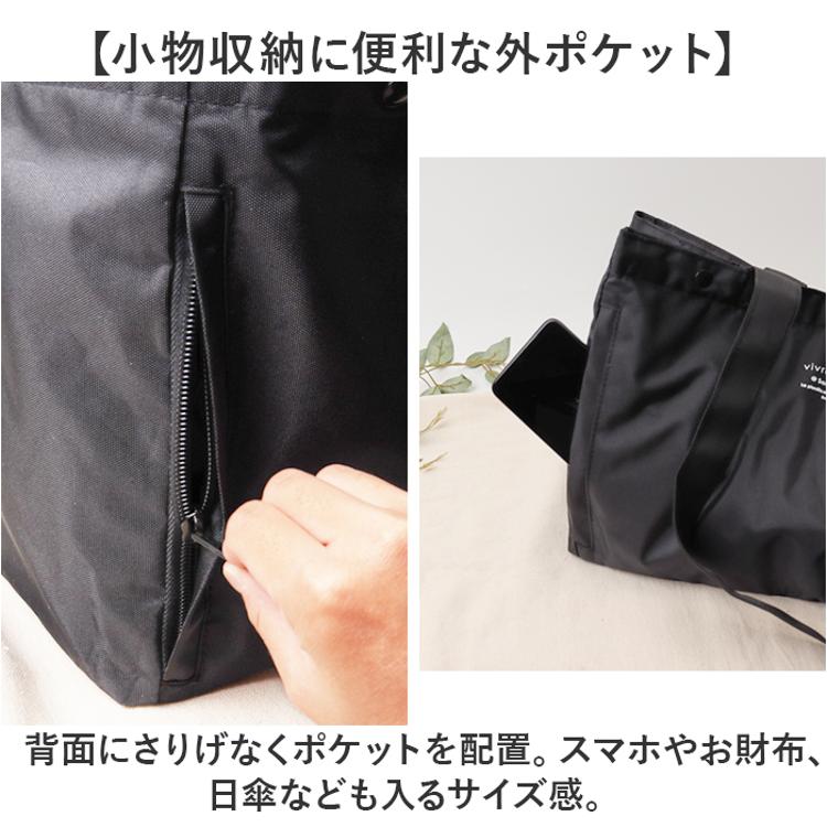 ・背面にさりげなくポケットを配置。スマホやお財布、日傘なども入るサイズ感。