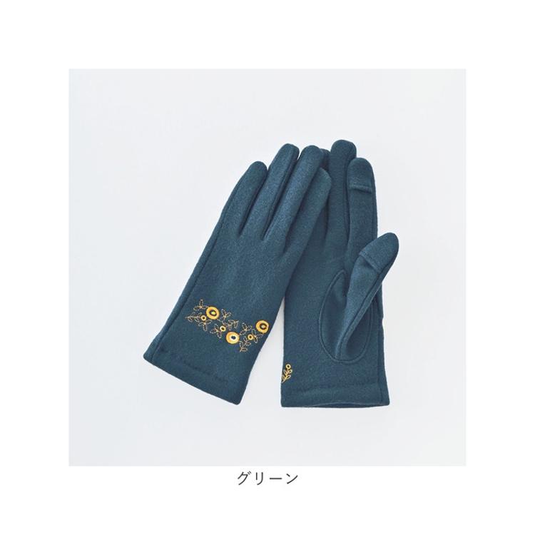 クロダ 手袋 KURODA AF65102L8 通販 グローブ レディース かわいい 暖かい スマホ対応 指あき 指出し 刺繍 おしゃれ 可愛い オシャレ 5本指 ボタニカルモチーフ刺繍ジャージグローブ アクリル マイクロボア レディース手袋 ファッション小物