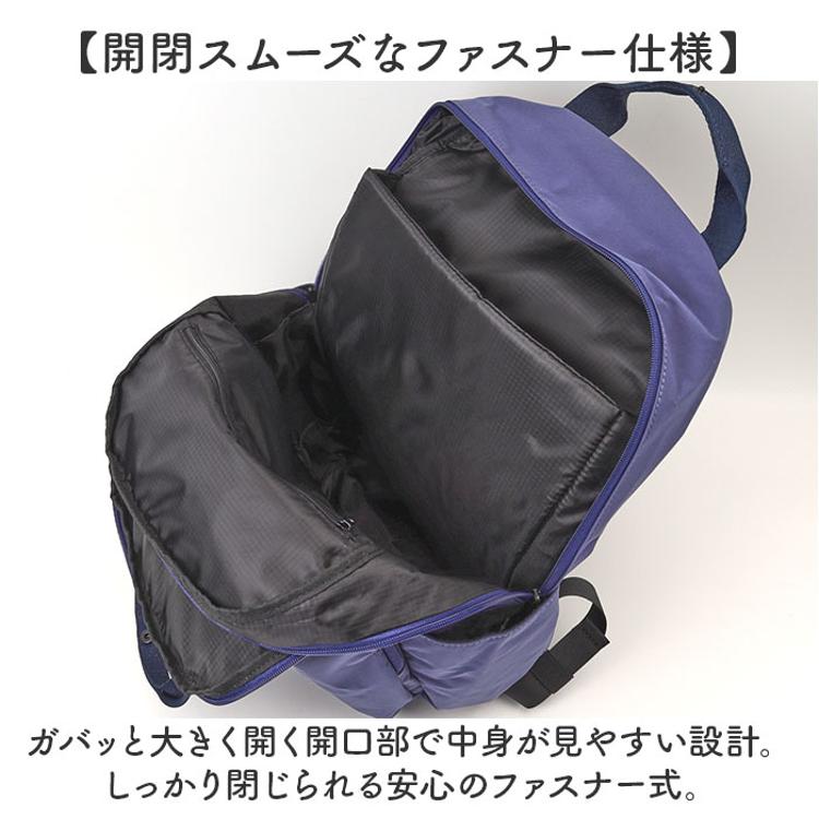 ・ガバッと大きく開く開口部で中身が見やすい設計。しっかり閉じられる安心のファスナー式。