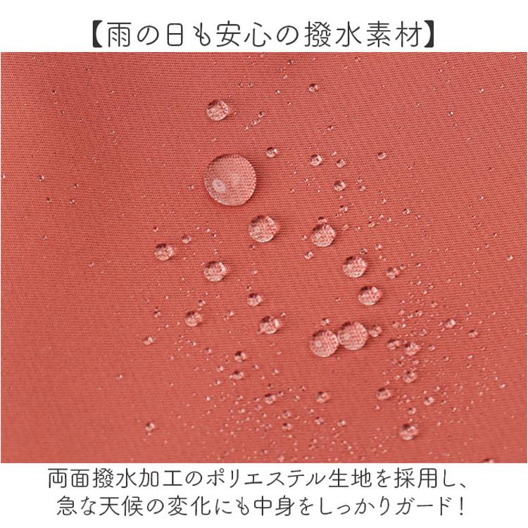 ・両面撥水加工のポリエステル生地を採用し、急な天候の変化にも中身をしっかりガード!