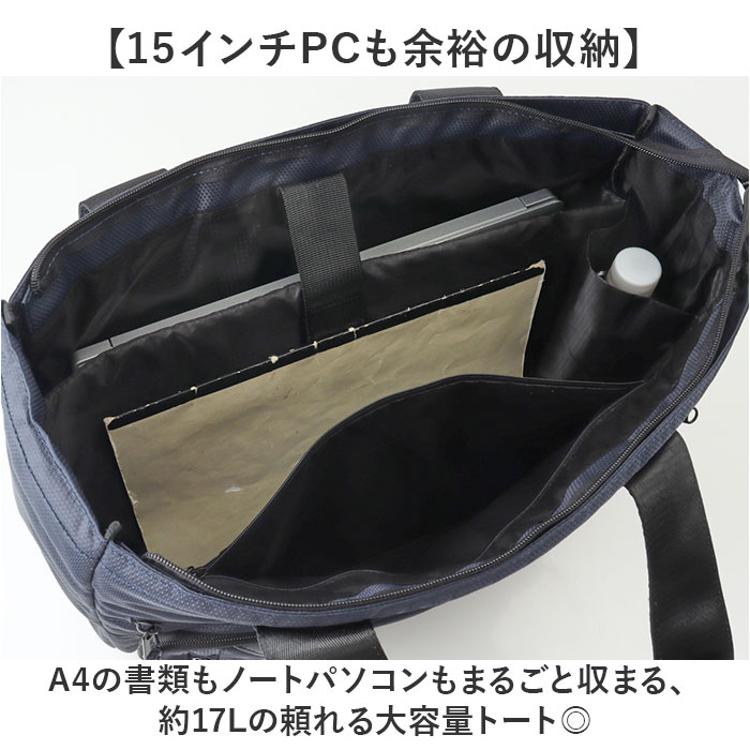 ・A4の書類もノートパソコンもまるごと収まる、約17Lの頼れる大容量トート◎