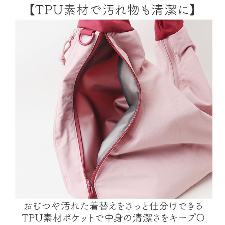 ・おむつや汚れた着替えをさっと仕分けできるTPU素材ポケットで中身の清潔さをキープ〇