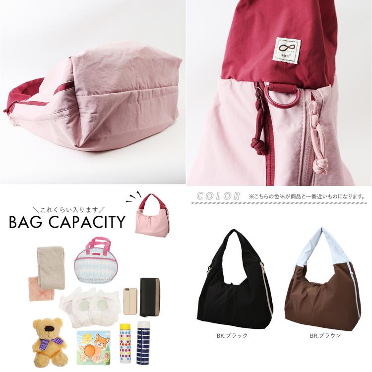 ・開口部はファスナー仕様だから荷物の飛び出しを防いで、電車や人混みでも安心して使える♪