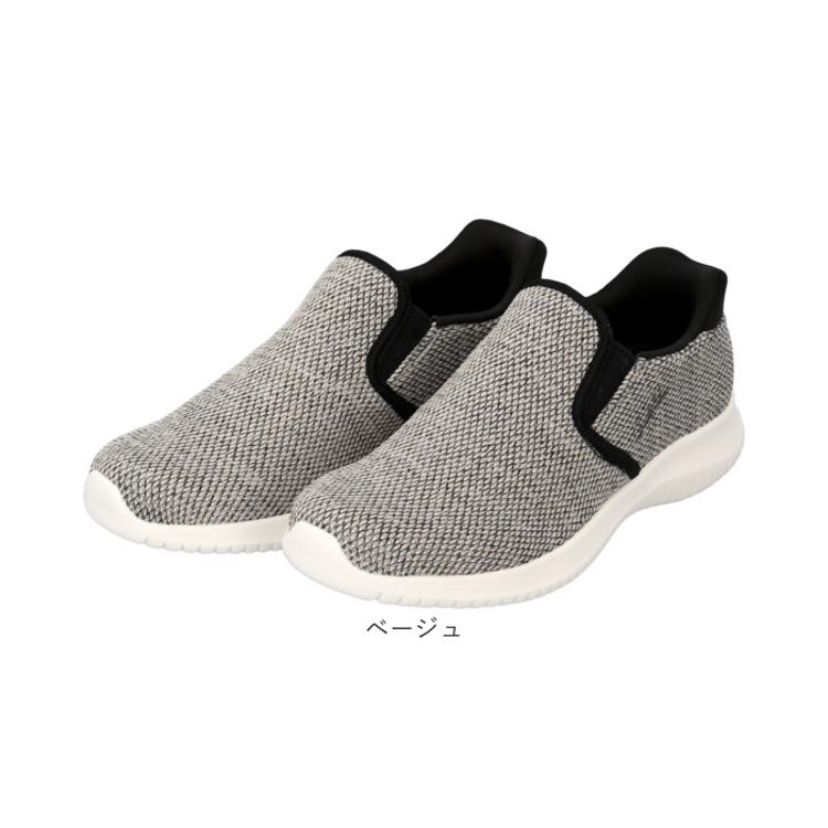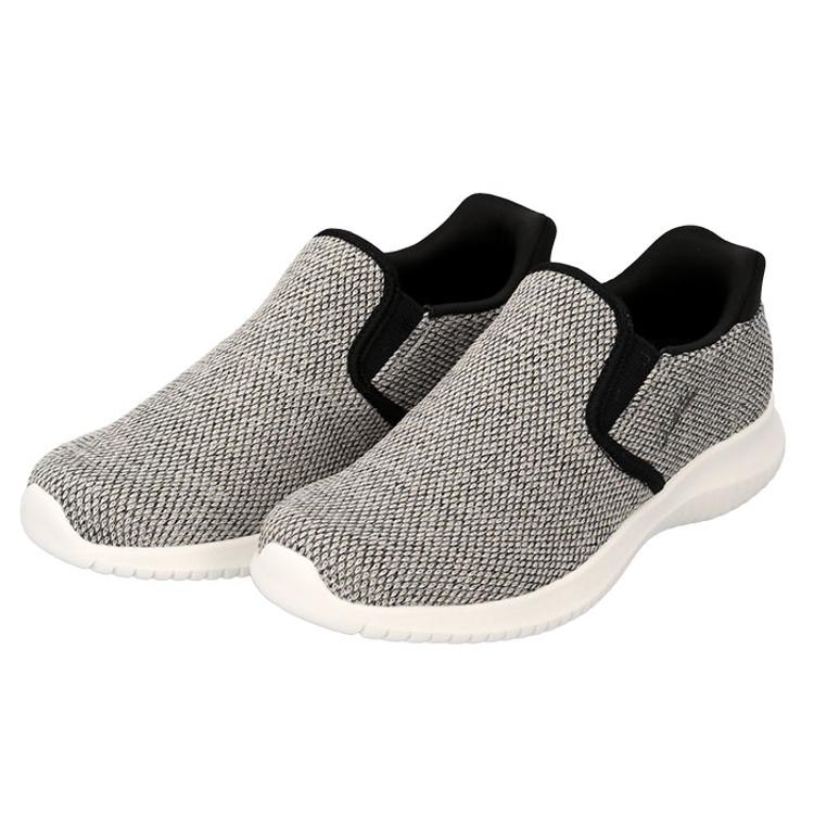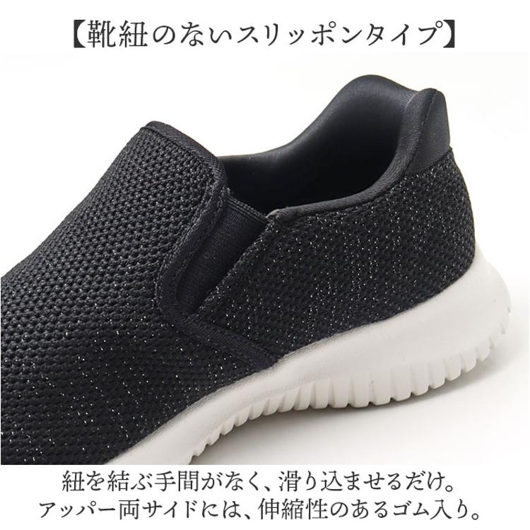 ・紐を結ぶ手間がなく、滑り込ませるだけ。アッパー両サイドには、伸縮性のあるゴム入り。