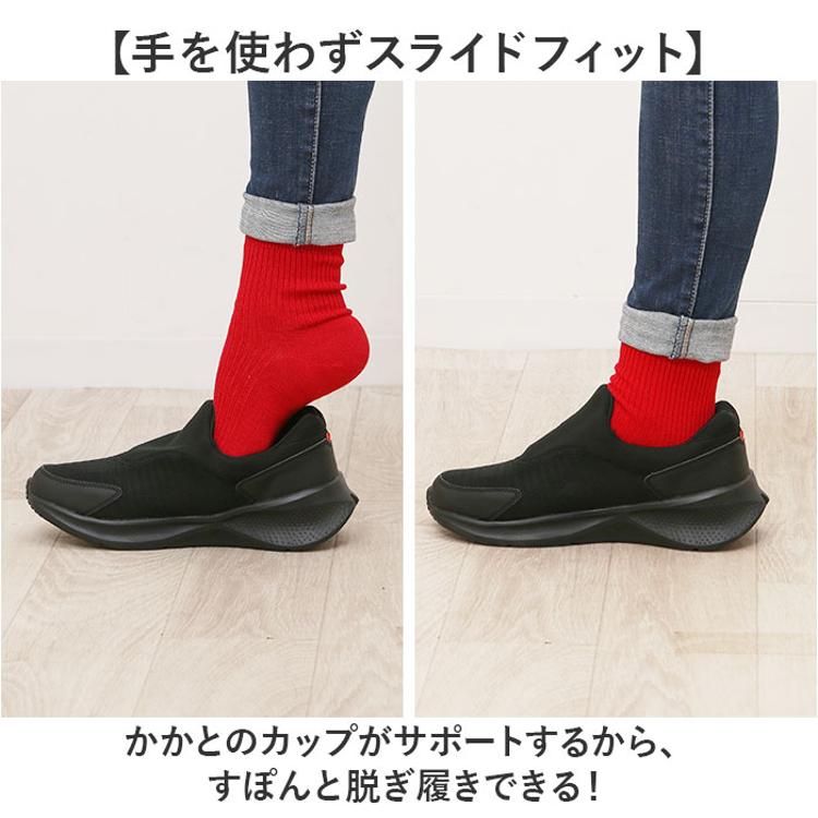 ・かかとのカップがサポートするから、すぽんと脱ぎ履きできる!