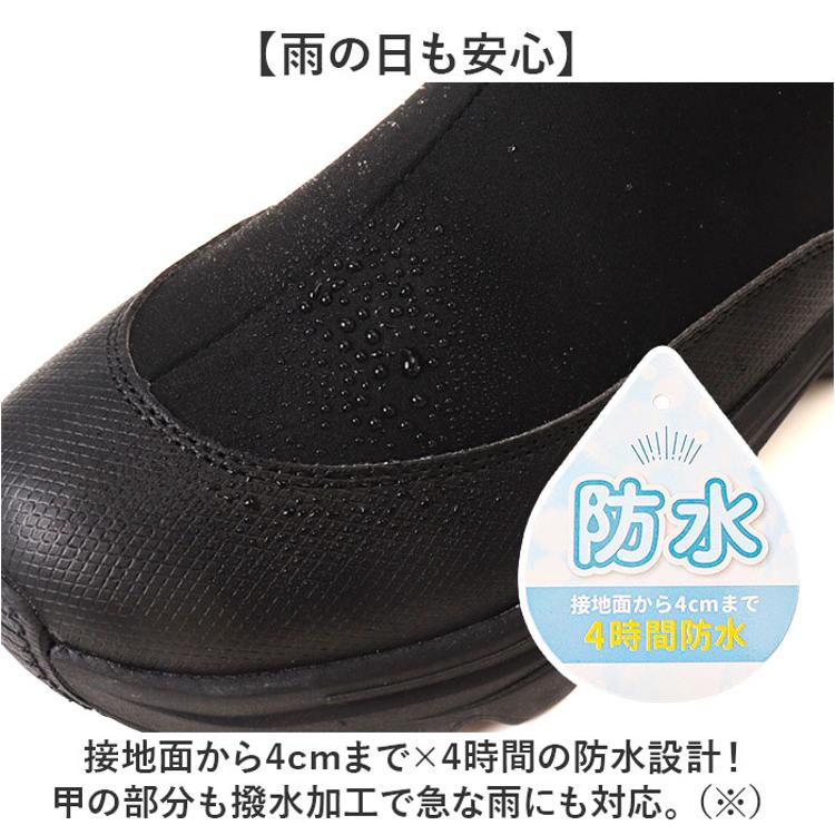・接地面から4cmまで×4時間の防水設計!甲の部分も撥水加工で急な雨にも対応。(※完全防水ではありません。甲上部まで水に浸かると水が侵入する場合があります。)