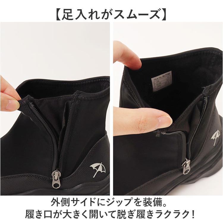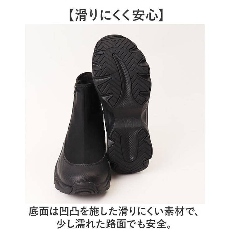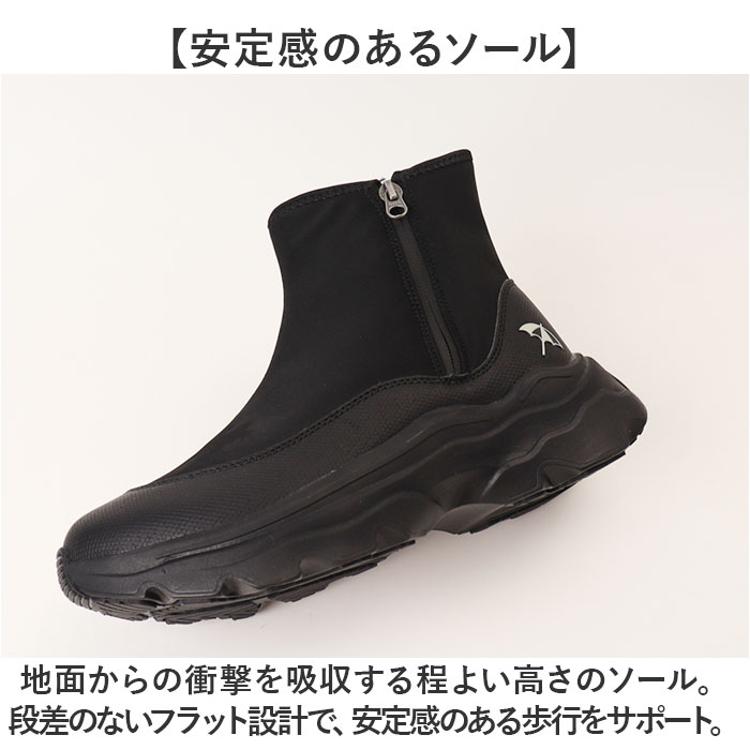・外側サイドにジップを装備。履き口が大きく開いて脱ぎ履きラクラク!