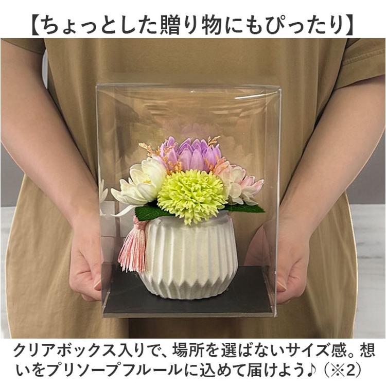 ・お供え向けのプリソープ&プリザーブドフラワーアレンジ。「ルミエール・デュ・クール」。
