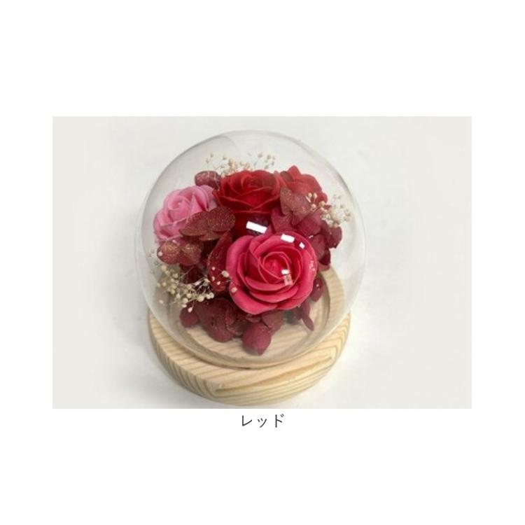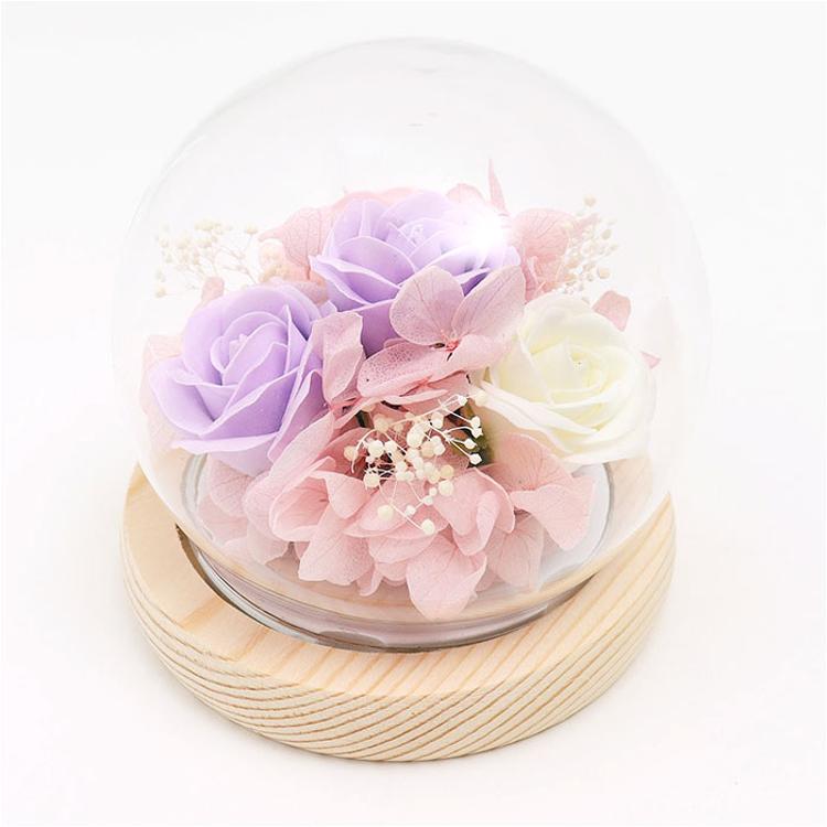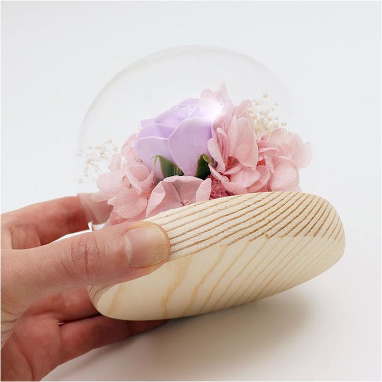 ・透明なガラスドームの中に、プリソープフラワーをアレンジ。美しい状態で楽しめる♪