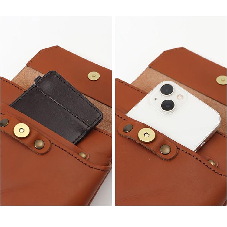 ・フラップ内側にポケットが2つ。スマホやパスケースなど、使用頻度の高い小物を収納。