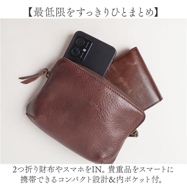 ・2つ折り財布やスマホをIN。貴重品をスマートに携帯できるコンパクト設計&内ポケット付。