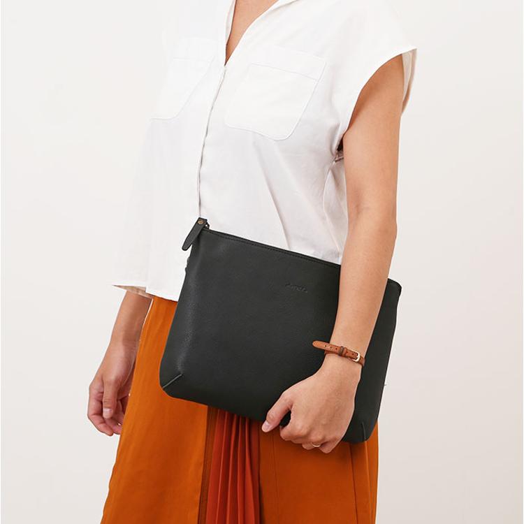 ・クラッチとして。長さ調節可能なショルダーを取り付け。肩掛けや斜め掛けも自在。