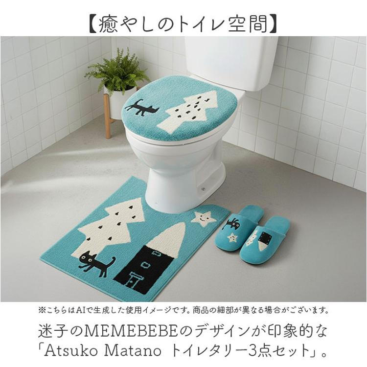 トイレマット 3点セット 通販 トイレカバー トイレフタカバー 洗える トイレ蓋カバー トイレ用マット ロング 80×60 スリッパ トイレスリッパ アツコマタノ atsuko matano おしゃれ 可愛い 猫グッズ トイレファブリック トイレタリーセット