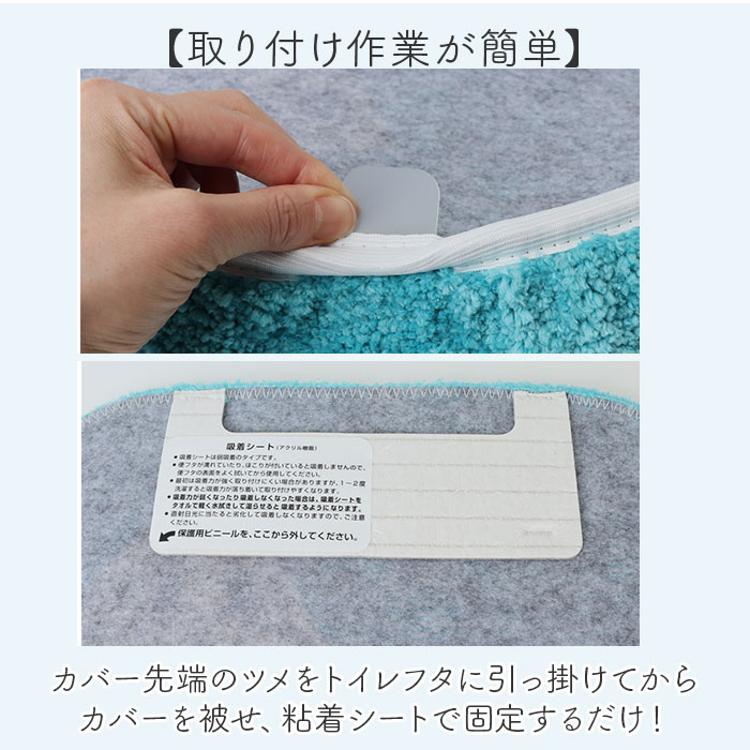 ・カバー先端のツメをトイレフタに引っ掛けてからカバーを被せ、粘着シートで固定するだけ!