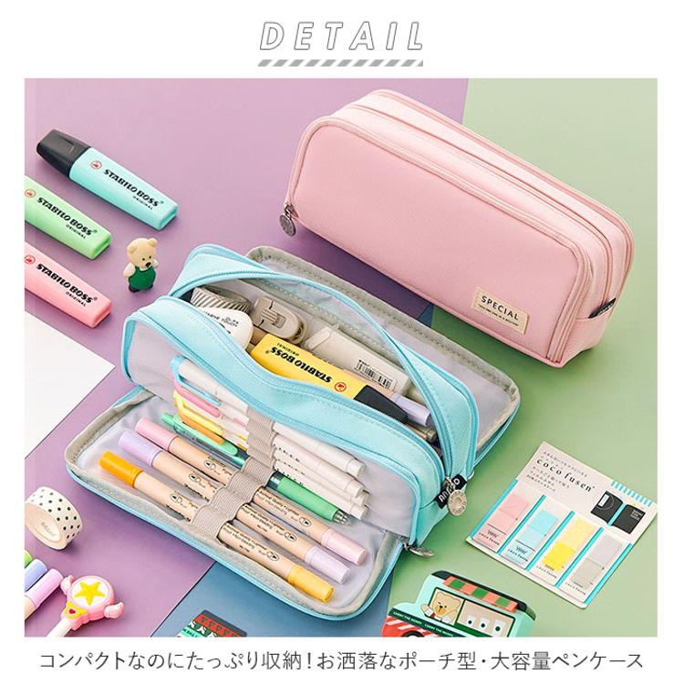 ・ペンケースの生地は丈夫で汚れに強いポリエステルキャンバス素材。お気に入りが選べる!色鮮やかなパステルカラーを中心にラインナップ。