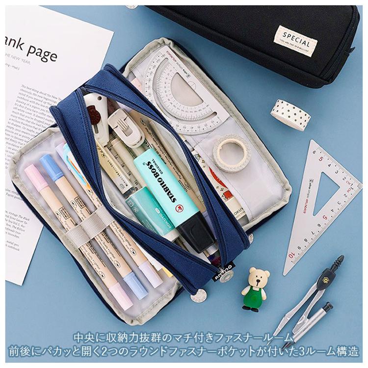 ・中央のファスナールームは、ハサミやカッター・スティックのりのような大きめステーショナリーがすっぽり入るサイズ感。