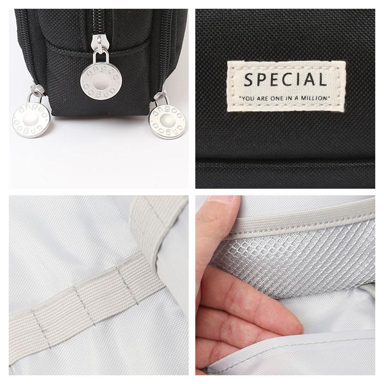 ・フロント側ファスナーポケットには、シャーペンやマーカーがスッキリ収まるペンホルダー×8を装備。