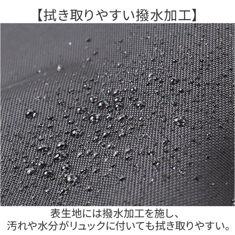 ・表生地には撥水加工を施し、汚れや水分がリュックに付いても拭き取りやすい。