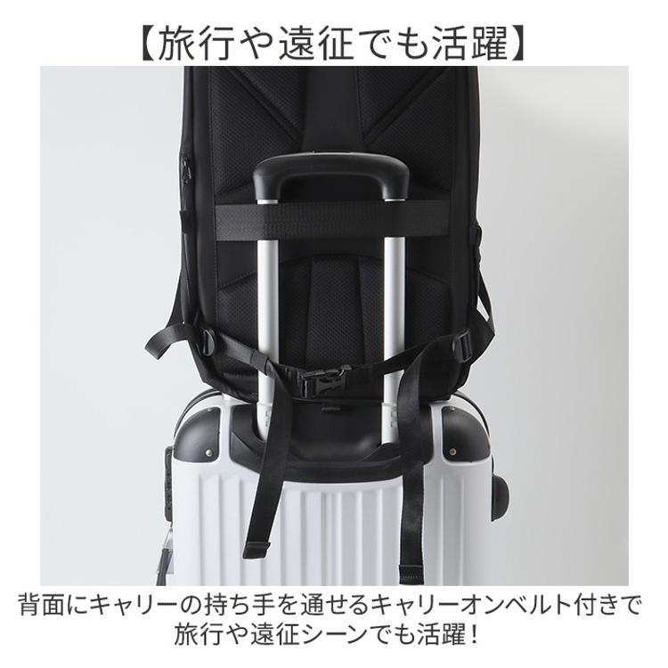 ・背面にキャリーの持ち手を通せるキャリーオンベルト付きで旅行や遠征シーンでも活躍!