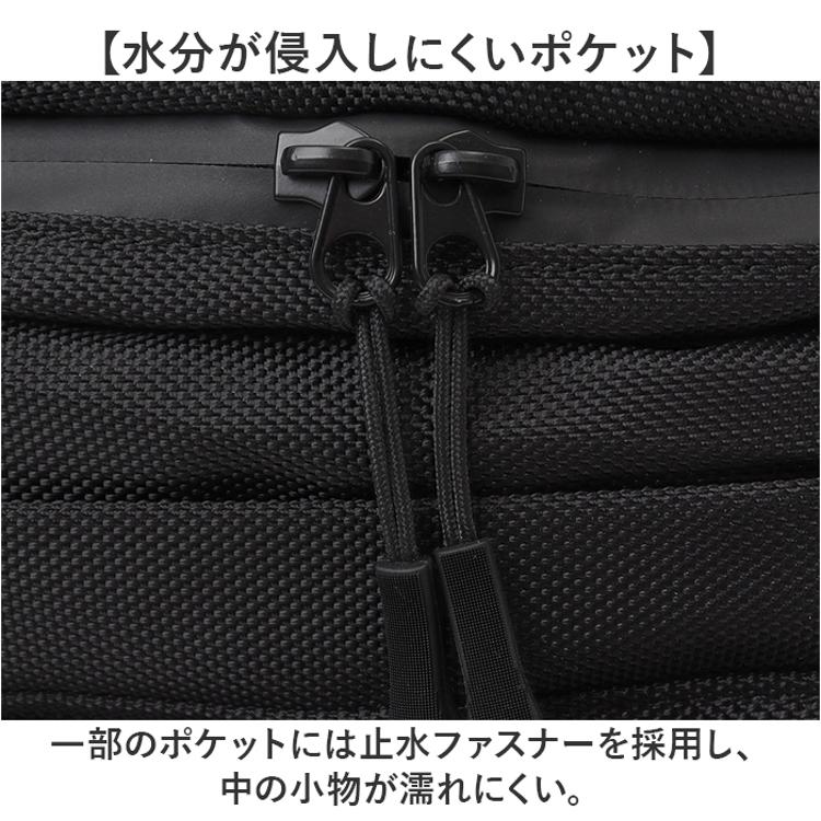 ・一部のポケットには止水ファスナーを採用し、中の小物が濡れにくい。