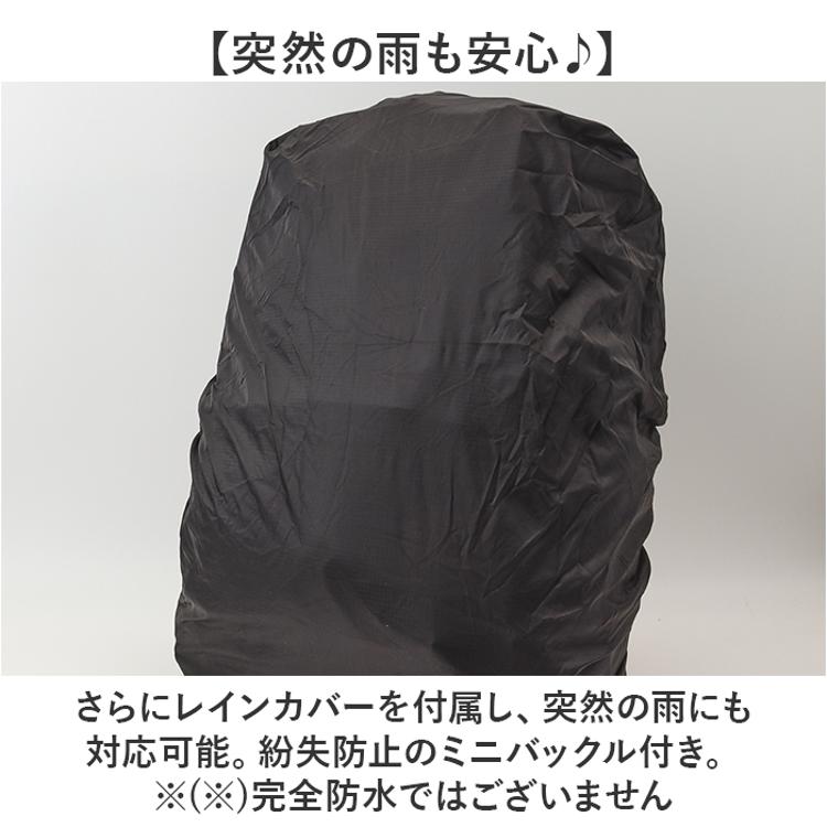 ・さらにレインカバーを付属し、突然の雨にも対応可能。紛失防止のミニバックル付き。※