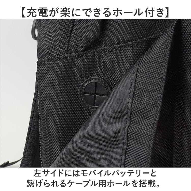 ・左サイドにはモバイルバッテリーと繋げられるケーブル用ホールを搭載。