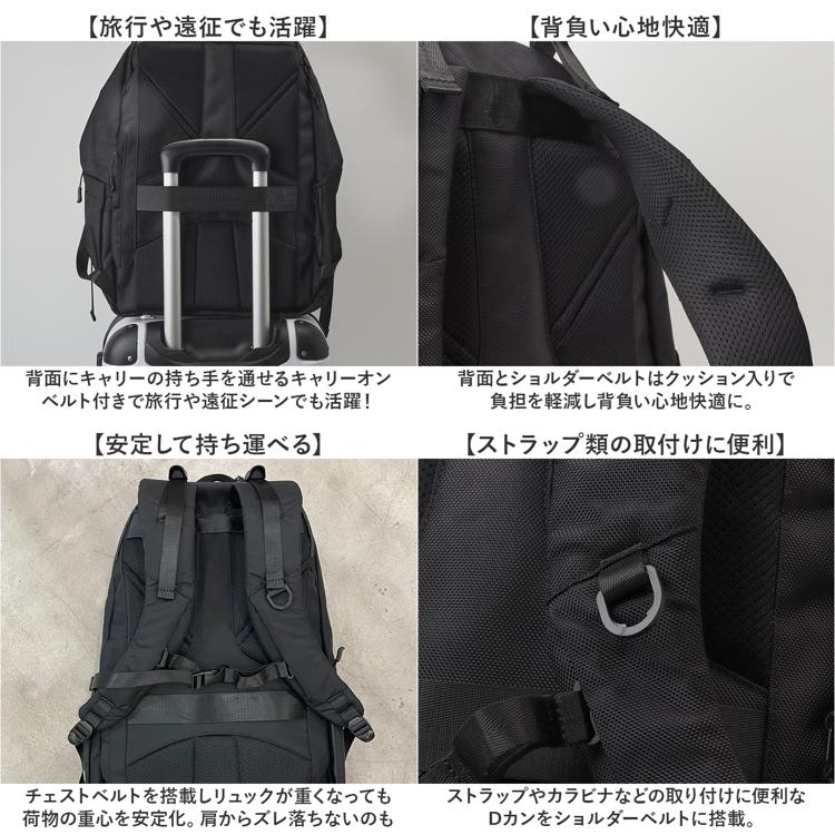 ・背面にキャリーの持ち手を通せるキャリーオンベルト付きで旅行や遠征シーンでも活躍!
