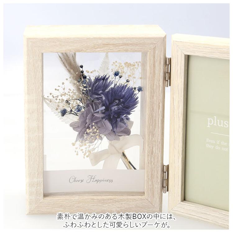 ・素朴で温かみのある木製BOXの中には、ふわふわとした可愛らしいブーケが。